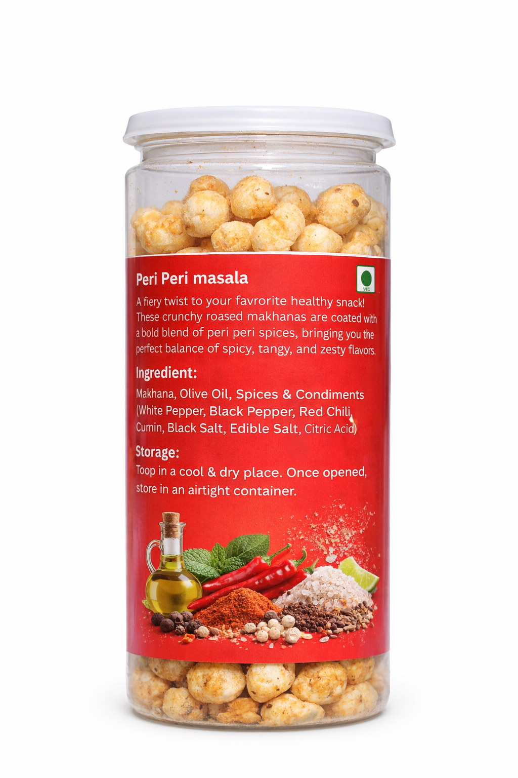 Thetaza Peri Peri Makhana is lightly roasted and coated with a bold blend of peri peri spices, delivering a fiery, tangy flavor with every crunchy bite. Perfectly balanced and full of taste, it offers a satisfying snack experience for those who love a little heat without the guilt.